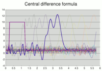 This model is a study of the simple advection equation, following a discussion published by Carver and Hinds in Simulation (1978). Just as with the explicit integration method discussed in that paper, we also see instability when using the IDA implicit BDF integrator here. The output in each case was generated by copying the contents of the Integrator tab and pasting into OpenOffice and plotting there.